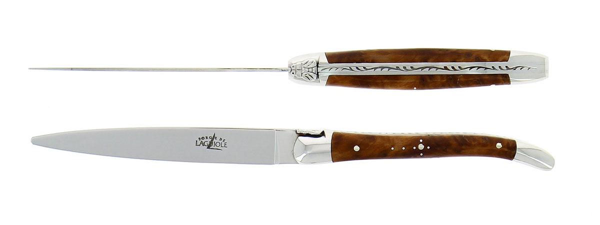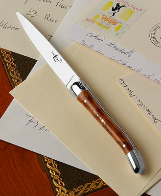 19 世紀初頭のフランス南部のライヨール村で生まれたライヨールナイフは当時から羊飼いや村人達に慣れ親しまれ、他の町や村でも同じスタイルが作られています がこのライヨールナイフは現在も原産地であるライヨール村で製造られています。そして、シンボルの蜜蜂のマークや、女性の脚を象ったと言われる独特のデザ インは多くの人々に愛され続けています。